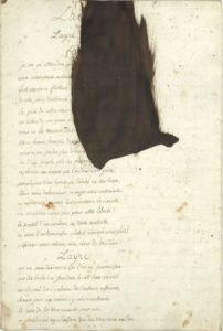 Ce texte très dense est la copie du premier et du second acte de Zaïre, la célèbre tragédie de Voltaire (1732) ; l’action se situe au temps de Saint Louis. Les longues tirades d’amour de la prisonnière « Zayre » et du prince Fatime ont fait rêver cette princesse de 15 ans au prince charmant qui la délivrerait. La tragédie contient en effet des allusions en rapport direct avec la triste captivité de la princesse qui, comme Lusignan « gémit dans un cachot, privé de lumière, Oublié de l’Asie et de l’Europe entière ». Elle dut retrouver un sens bien profond à certains vers : « Ne soupirez-vous plus pour cette liberté ? [...] Le reste de la terre, anéanti pour moi, M’abandonne au sultan qui nous tient sous sa loi [...] Prisonnière en ces lieux »... Nérestan espère « ramener Zayre à cette heureuse cour, Où Louis des Vertus a fixé le séjour »... Et Châtillon évoque « ces jours de sang et de calamités Où je vis sous le joug de nos barbares maîtres Tomber ces murs sacrés conquis par nos ancêtre »... Lusignan s’écrie : « Hélas de cette cour j’ai vu jadis la gloire. [...] Mais à revoir Paris je ne dois plus prétendre »... Et il dit à Zaïre : « Ma fille [...] songe au sang qui coule dans tes veines : C’est le sang de vingt Rois […] C’est le sang des martyrs »…