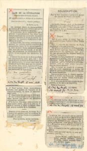 La coupure du Cri du Peuple du 15 mai 1871, rendant compte d’une réunion du « Club de la Révolution » est annotée au bas par Louise Michel : « [Cert]ifié ne varietur Louise Michel ».