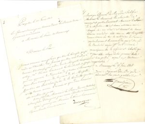 P.S. du général Grandjean, Roncevaux 15 juin 1808 (1 p. in-fol.), attestant que les chanoines et le Prieur du chapitre de Roncevaux « m’ont donné assistance ainsi qu’aux troupes sous mes ordres et donnent des secours aux militaires malades »…