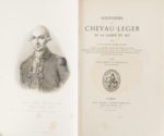 26-BELLEVAL (Louis-René de). Souvenirs d'un Chevau-Léger de la Garde du Roi, publiés par René de Belleval, son arrière-petit-fils. Paris, Aug. Aubry, 1866, petit in-8, VIII-323 pp., portrait gravé en frontispice, maroquin rouge, dos à nerfs fleurdelysé, triple filet doré en encadrement sur les plats, filets dorés au centre avec fleurs de lys aux angles, dentelle intérieure, tranches dorées sur témoin, couverture et dos conservés (Raparlier). Première édition rare. Mennessier de La Lance, I, 104 : "Outre une partie historique et anecdotique intéressante, l'ouvrage contient de nombreux renseignements sur l'organisation, la composition, l'uniforme, l'armement, la remonte, les campagnes, etc., des Chevau-Légers et, accessoirement, sur d'autres corps de la cavalerie et ceux de la Maison du Roi. À signaler, parmi les anecdotes, l'émouvant récit du licenciement des Mousquetaires en 1775, conduisant à pied leurs chevaux par la figure, déposant à terre devant eux leurs uniformes et leurs armes, abandonnant leurs chevaux et se retirant en silence les yeux remplis de larmes sans que plus d'un siècle de gloire et de bravoure ait pu sauver de la destruction leurs deux compagnies". Ces mémoires de Louis-René de Belleval (1741-1807), marquis de Bois-Robin, s'étendent de 1758 à 1789. Y sont associées (pp. 285-323) la relation du siège de Tournay et de la bataille de Fontenoy tirée de la correspondance du chevalier de Belleval (1720-1790) ainsi que quelques lettres de princes ou de grands personnages. Très bel exemplaire.