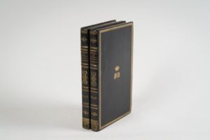 110-DUMOURIEZ (Charles-François du Périer, dit). Mémoires et correspondance inédits. Publiés sur les manuscrits autographes déposés chez l'éditeur, et précédés d'un fac-simile. Paris, Eugène Renduel [Imprimerie de Cosson], décembre 1834, 2 tomes en un fort vol. in-8, 342 pp., 328 pp., 12 pp. de catalogue Renduel, avec un fac-similé hors texte, maroquin noir, dos à nerfs orné, filets dorés sur les plats, chiffre couronné au centre des premiers plats, tranches dorées (reliure de l'époque). Édition originale de ce recueil procuré par Louis-F.-J. Ledieu, et qui ne reprend pas le récit de Dumouriez sur la période révolutionnaire, mais réunit plusieurs opuscules rédigés entre 1819 et 1821, concernant l'état politique de l'Europe sous la Restauration (Duymouriez ne mourut qu'en 1823 près de Londres) : 1. Coup d'oeil politique sur l'Europe au mois de décembre 1819. - 2. Réflexions sur la révolution espagnole. - 3. Mémoire militaire sur le Royaume des Deux-Siciles. - 4. Mémoire militaire pour l'Espagne. - 5. Mémoire général sur le gouvernement de Buenos-Ayres. Exemplaire du prince Demidoff avec son chiffre couronné sur les plats et le cachet de la Bibliothèque de San Donato. Nombre de ses livres passèrent ensuite par acquisition dans la bibliothèque du prince Roland Bonaparte, avec son ex-libris. Bon exemplaire. Mors restaurés, rousseurs.