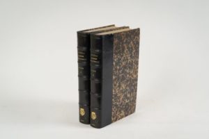 111-DUQUESNOY (Adrien). Journal sur l'Assemblée Constituante, (3 mai 1789-3 avril 1790). Publié pour la S.H.C. par Robert de Crèvecoeur. Paris, Picard, 1894, 2 vol. in-8, XL-504 pp. et 545 pp., index, demi-maroquin bleu nuit, dos à nerfs, armes en pied, tête dorée (reliure de l'époque). Édition originale. Rédigé par le député du tiers-état de Bar-Le-Duc, ce journal "est le compte rendu des débats de l'Assemblée" (Fierro, 489). Il constitue un document historique de première importance. Bel exemplaire aux armes du Marquis Des Roys, avec son ex-libris.