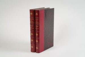 169-GOURVILLE (Jean Héraut de). Mémoires, 1646-1702. Pub. pour la S. H. F. par Léon Lecestre. Paris, Renouard, 1894-1895, 2 vol. in-8, CXVI-264 pp. et 332 pp., demi-maroquin rouge, dos à nerfs orné (reliure de l'époque). Ces mémoires sont placés sur un point de vue très personnel mais, "toutefois, en parlant de lui-même, il a été amené à exposer, puisqu'il était un homme de finance, la situation financière des états qu'il a parcourus au cours de ses négociations, et surtout celle des nobles qui ont eu recours à son habileté". Bon exemplaire. Rousseurs.