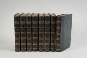 177-GUIZOT (François). Mémoires pour servir à l'histoire de mon temps. Paris, Michel Lévy, 1858 - 1867, 8 vol. in-8, demi-maroquin noir, dos à nerfs, caissons de filets dorés, tête marbrée (reliure de l'époque). Edition originale, avec tous les volumes aux bonnes dates, sans aucune mention d'édition. Texte capital pour l'histoire politique du XIXe siècle. "Mémoires publiés du vivant de Guizot. Le premier chapitre est consacré à la jeunesse de l'homme d'État. Quelques détails sur l'Université impériale (...). Mais les mémoires commencent réellement avec l'entrée de Guizot dans la vie publique en 1814. Deux chapitres importants sur la première Restauration et les Cent-Jours" (Tulard). Tulard, 677. Bertier, 508. Bon exemplaire. Rousseurs.