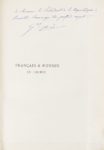 182-HERBÉ (Général). Français et Russes en Crimée. Lettres d'un officier français à sa famille pendant la Campagne d'Orient. Paris, Calmann-Lévy, 1892, in-8, 442 pp., maroquin rouge, dos à nerfs, caissons et filets sur les nerfs à froid, décor géométrique à froid sur les plats, tête dorée, pointillés dorés sur les tranches, dentelle intérieure (Prat). Édition originale sur papier de Hollande. Témoignage de première main sur la guerre de Crimée. Envoi de l'auteur au président Sadi Carnot : "A Monsieur le Président de la République, humble hommage de profond respect". Très bel exemplaire.