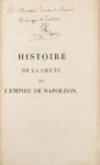 Bibliothèque Historique en condition souvent exceptionnelle avec provenances ; Mémoires, correspondance, biographies ; Nombreux livres rares sur l’Empire : éditions originales de Coignet, Parquin, Marbot, Suchet, François, Méneval, Metternich, Ney, Soult, Grouchy … Ancien Régime et XIXe siècle : Saint-Simon, Vigée-Lebrun, Barante, Barrot, Broglie, Castelnau, Dugué-Trouin, Tocqueville … Provenance : Marie-Louise, Charles X, Louis-Philippe, Henri d’Orléans, Marquis Des Roys, Marquis de L’Aigle (Franc-Port), Chaudron de Courcel, Carnot, Colbert, Boyer de Crémilles, Noailles, Cormenin, Barante, lord Seymour, E.-A. de Hanovre… Reliures signées : Simier, Capé, Canape, Bretault, Raparlier, Pierson, Lemardeley, Thierry, Champs, Stroobants, Pagnant, Belz-Niédrée, Lortic, Trautz-Bauzonnet, Yseux, Petit, Carayon, Prat, Ritter, Affolter, Allo, David, Huser, Gruel…