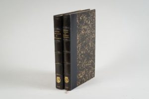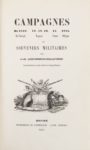 220-LEMONNIER-DELAFOSSE (Jean-Baptiste). Seconde campagne de Saint-Domingue, du 1er décembre 1803 au 15 juillet 1809 ; précédés de Souvenirs historiques & succincts de la première campagne, expédition du général Leclerc, du 14 décembre 1801 au 1er décembre 1803. [Suivi de :] Campagnes de 1810 en Portugal, 1811, 1812, 1813 en Espagne, 1814 en France, 1815 en Belgique ou Souvenirs militaires. Le Havre, Imprimerie de H. Brindeau [et] Alph. Lemale, 1846-1850, 2 vol. in-8, VIII-304 pp. et 415 pp., portrait, demi-maroquin bleu nuit, dos à nerfs, armes en pied (rel. de l'époque). Rare réunion des deux ouvrages publiés à quatre ans d'intervalle. Tulard, 895. "Saint-Domingue, le Portugal et l'Espagne sous Masséna, Marmont et Jourdan, la bataille de Toulouse, Waterloo et, en annexe, une pittoresque chanson sur le mariage de Napoléon constituent l'essentiel des souvenirs de ce lieutenant-colonel". Envoi de l'auteur : Hommage & souvenir d'amitiés de l'auteur au colonel Godin, Directeur d'Artillerie au Havre, le 26 mai 1848. Bel exemplaire aux armes du Marquis Des Roys, et avec son ex-libris. Dos un peu passé.