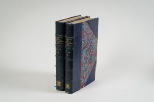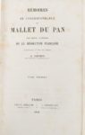 241-MALLET DU PAN (Jacques). Mémoires et correspondance, pour servir à l'histoire de la Révolution Française. Recueillis et mis en ordre par A. Sayous. Paris, Amyot et Cherbuliez, 1851, 2 vol in-8, XII-464 pp. et 512 pp., demi-maroquin bleu à coins, dos à nerfs, monogramme en pied, tête dorée (reliure postérieure). Première édition. "Le grand publiciste suisse Mallet du Pan n'a pas rédigé de véritables souvenirs. Il a tenu un journal intime durant son séjour à Paris. C'est de ce dernier et surtout de ses très nombreux écrits politiques que s'est servi Sayous pour écrire ce qui est plus une biographie de Mallet du Pan qu'une édition de ses publications. Cet ouvrage n'en est pas moins d'une grande importance, car le jugement de Mallet du Pan était d'une sûreté exceptionnelle."(Fierro, 941). Bel exemplaire. Rousseurs.
