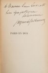 245-MARIGNY (Marie-Anne-Françoise de). Paris en 1814. Journal inédit, augmenté du Journal de T.-R. Underwood. Pub. avec intro. et notes par J. Ladreit de Lacharrière. Préf. de H. Houssaye. Paris, Émile-Paul, 1907, petit in-8, IX-397 pp., index, demi-maroquin rouge, dos à nerfs, tête dorée (reliure de l'époque). Tulard, 962 : "Soeur de Chateaubriand, elle a consigné dans son journal tous les événements de 1814, du 11 février au 3 mai, jour où Louis XVIII entra à Paris. Malgré ses partis-pris royalistes, ce document constitue une source importante sur l'esprit public dans la capitale dans les derniers jours de l'Empire." Suivi du Journal d'Underwood. (p. 95-397) Tulard 1440 : "Peintre revenu en France après la rupture de la paix d'Amiens, il fut lié à Joséphine, Isabey, Marmont. Son journal correspond aux mois de janvier, février, mars et avril 1814. Remarquablement informé (l'auteur indique toujours la nature de ses sources), il nous éclaire sur l'état des esprits à Paris au moment de la chute de l'Empire." Envoi de l'éditeur. Bel exemplaire.