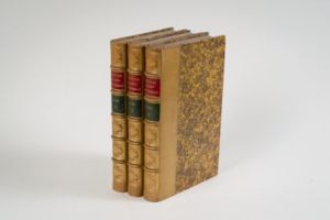 262-MIOT DE MELITO (André-François). Mémoires. Paris, Lévy Frères, 1858, 3 vol. in-8, VII-397 pp., 382 pp. et 436 pp., demi-veau blond, dos à nerfs orné, tranches marbrées (reliure de l'époque). Edition originale. Tulard, 1026. "On y trouve évoquées les affaires politiques sous le Consulat, la Corse, la vie à Naples, l'Espagne. Sur tous ces points, les mémoires de Miot constituent une source fondamentale". Bon exemplaire. Rousseurs. Quelques soulignures au crayon.