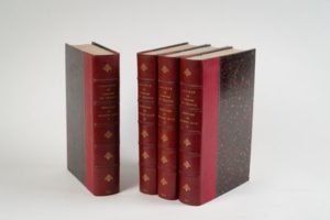 264-MOLÉ (Mathieu). Mémoires, 1614-1649. Pub. pour la S.H.F. par A. Champollion-Figeac. Paris, Renouard, 1855-1857, 4 vol. gr. in-8, index, demi-maroquin rouge, dos à nerfs orné (reliure de l'époque). Excellents mémoires sur le XVIIe siècle par le Premier Président du Parlement de Paris et Garde des Sceaux de France. Bon exemplaire. Rousseurs.
