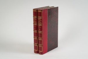 274-MOREAU DE JONNES (Alexandre). Aventures de guerre au temps de la République et du Consulat. Paris, Pagnerre, 1858, 2 vol. in-8, 464 pp. et 434 pp., demi-maroquin rouge, dos à nerfs, filets dorés, tête marbrée, couverture conservée (reliure de l'époque). Édition originale. Tulard, 1063 : "Connu comme l'auteur de statistiques sur l'agriculture ou l'industrie, Moreau de Jonnès fut aussi un jeune soldat d'artillerie de marine, qui participa à la guerre des Antilles et un conteur assez proche par sa verve de Marbot et d'Alexandre Dumas. Sur Fort-de-France et Saint-Pierre en 1802 (ch. XVII-XVIII) on trouvera d'utiles indications ainsi que sur la rupture de la paix d'Amiens. Le récit s'arrête en 1805." "Il raconte dans ses souvenirs divers épisodes de l'histoire parisienne : les Tuileries en 1791, le champ de Mars le 17 juillet de la même année, la journée du 10 août 1792. Volontaire en 1792 dans le bataillon d'Ille-et-Vilaine, il se retrouve à Brest puis à Toulon, à l'affaire de Quiberon, puis aux Antilles et dans l'expédition d'Irlande." (Fierro, 1075). Bel exemplaire.
