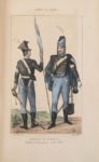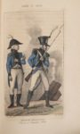 279-MURET (Théodore). Histoire de l'Armée de Condé. Paris, Au Bureau de la Mode, 1844, 2 vol. in-8, XV-436 pp. et 423 pp., front. au tome 1, ill., fac-similé, carte dépl., demi-maroquin vert, dos lisse orné d'un décor rocaille (reliure de l'époque). Édition originale de l'un des meilleurs ouvrages sur l'armée de Condé. Un des rares exemplaires complets des 6 planches en couleurs par Bauderon représentant les uniformes du corps de Condé. Les pièces justificatives contiennent de nombreux documents, dont le Tableau des officiers présents à l'Armée de Condé en 1791, la Correspondance du Prince de Condé avec le maréchal de camp comte Elliot ainsi que sa Correspondance pendant la campagne de 1796, un état de l'Armée de Condé au moment de son licenciement en 1801. Bel exemplaire. Rousseurs.
