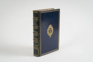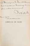 318-REISET (Tony-Henri-Auguste de). Les reines de l'émigration. Anne de Caumont-La Force, comtesse de Balbi. Deuxième édition. Paris, Emile-Paul, 1908, in-8, XXXVIII-542 pp., front., index, maroquin bleu, dos orné de filets dorés, encadrement de filets dorés sur les plats, armes au centre, dentelle intérieure (Gruel). Très bel exemplaire fans une fine reliure de Gruel aux armes du Duc d'Orléans. Envoi du vicomte de Reiset au duc d'Orléans.