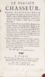452. [CHASSE] - SELINCOURT (Jean de). Le Parfait chasseur, pour l'instruction des personnes de …