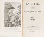 472. DELILLE (Jacques). Les Jardins, poème. A Paris, chez Levrault, de l'Imprimerie de P. Didot l'aîné, an IX - 1801, in-16, XXXV-216 pp., veau acajou, dos lisse orné, décor de grecques en encadrement sur les plats, roulette intérieure, tranches dorées (reliure de l'époque). Nouvelle édition augmentée, illustrée de 4 gravures. Bon exemplaire. Coins usés. Joint, du même auteur : La Pitié. Poëme en quatre chants. A Paris, chez Giguet et Michaud, 1804, basane blonde mouchetée, dos lisse orné, décor de grecques en encadrement sur les plats, tranches marbrées (reliure de l'époque). 4 gravures. Bon exemplaire. Rousseurs.