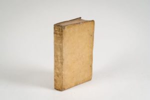 490. [DROIT] - JUSTINIEN. Justiniani PP A. Institutionum (Juris) libri IIII. Antverpiae. Christophe Plantin, 1575, 383 pp., petit in-8, vélin, titre manuscrit au dos, petite tache sur le second plat, traces de lacets (reliure de l'époque). Edition peu courante de cet ouvrage majeur, sorte de manuel de droit élémentaire composé en l'an 530 sur ordre de Justinien par les juristes Tribonien, Théophile et Dorothée. Illustré de figures dans le texte. Plaisant exemplaire dans sa première reliure.