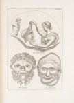 505. FICORONI (Francesco de). De larvis sceniche e figuris comicis antiquorum romanorum. Rome. Angeli Rotili, 1754, in-4, (6) ff., 115 pp., (7) pp., veau moucheté, double filet à froid en encadrement sur les plats, dos à nerfs orné (reliure de l'époque). Troisième édition, illustrée de 85 planches, certaines dépliantes. L'ouvrage est richement orné de reproductions de masques antiques et de personnages de la comédie ancienne par S. Pomarede, B. de Petris et F. Mazzoni. Ex-libris du Baron d'Arlot de Saint-Saud, bibliothèque du château de La Valouze. Des rousseurs et quelques piqûres. Dos un peu frotté.