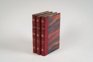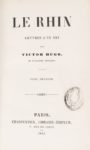 539. HUGO (Victor). Le Rhin. Paris, Charpentier, 1845, 3 volumes in-12, demi-chagrin rouge, dos à nerfs orné (reliure de l'époque). Troisième édition, parue la même année que l'édition originale. Infimes rousseurs. Petit cachet humide sur les pages de titre.