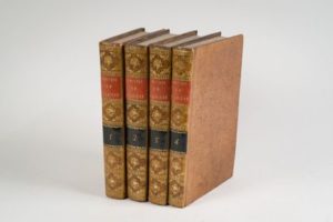 664. RULHIERE (Claude-Carloman de). OEuvres posthumes. Paris, Ménard et Desenne fils, 1819, 4 volumes in-8, portrait, basane fauve moucheté, dos lisse orné, tranches marbrées (reliure de l'époque). Sous ce titre se cache l'Histoire de l'anarchie de Pologne. Bel exemplaire. Quelques épidermures sur les plats.