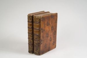 672. [SCHEFFMACHER]. Lettres d'un Docteur Allemand de l'Université catholique de Strasbourg à un Gentil-Homme protestant, Sur les six Obstacles au Salut, qui se rencontrent dans la Religion Luthérienne. Avec : Lettres d'un théologien de l'Université catholique de Strasbourg à un des principaux magistrats de la même ville. Strasbourg, Jean-François Le Roux, 1748-1750, 2 ouvrages en 2 volumes in-4, veau marbré, roulette dorée sur les plats, dos à nerfs orné (reliure de l'époque). Troisième édition. Reliure usagée aux coiffes et coins, mouillure sur une vingtaine de feuillets au premier volume. Les pages de titre des deux volumes ont été inversées par le relieur.