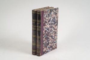702. WARREN (Edouard de). L' Inde anglaise en 1843. Paris, Comptoir des Imprimeurs-Unis, 1844, 2 vol. in-8, [4]-VIII-440-[3] et [4]-408-[8] pp., demi-veau violine, dos lisse, pointillés et roulettes dorés (reliure de l'époque). Edition originale de cette intéressante relation d'un Français d'origine irlandaise, né en Inde, et qui, après la Révolution de 1830, passa neuf années dans les possessions britanniques de la Compagnie des Indes. Il en rapporta un témoignage qui se veut complémentaire de celui laissé par Victor Jacquemont, et que sa mort prématurée avait interrompu. Ex-libris Bibliothèque du Château d'Oberhofen. Bon exemplaire. Dos un peu foncé.