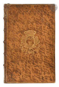 Exemplaire aux armes de la famille Brossier de La Roullière. Originaire de Touraine, la famille Brossier s’établit au XVIIe siècle en Lyonnais et en Dauphiné, où elle possédait les fiefs d’Anthon et de Vertrieu. Olivier, Hermal et de Roton ne cite qu’un membre de la famille, Étienne-Alexandre Brossier, baron de La Roullière, capitaine commandant au régiment de Royal-Vaisseaux, qui prit part à l’assemblée de la noblesse à Lyon en 1789. Rare exemplaire en reliure armoriée de l’époque. Un des premiers possesseurs a ajouté la mention « Bas de Soye » à l’encre en haut du premier plat.