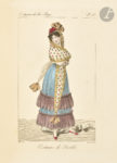 LA MÉSANGÈRE (Pierre de). — Costumes des femmes de Hambourg, du Tyrol, de la Hollande, de la Suisse, de la Franconie, de l’Espagne, du royaume de Naples, etc. — Paris : chez l’éditeur, 1827. — In-folio, 352 x 255 : (2 ff.), 41 pp. mal...