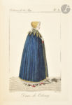 Le texte est une des dernières contributions du très influent Pierre de La Mésangère (1761-1831), directeur du Journal des Dames et des modes de 1799 à 1831. La Mésangère était l’initiateur de la plupart des publications concernant le costume, qui ont fait la renommée de Lanté et Gatine. De la bibliothèque de Pierre Léandre de Mark-Tripoli (1770-1842), comte de Panisse- Passis. Général et homme politique, il fut conseiller général des Bouches-du-Rhône de 1823 à 1830 et Pair de France de 1827 à 1830.
