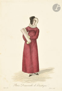 Très rare suite de 41 sur 47 gravures de costumes en couleurs, consacrée aux ouvrières de Paris. Elles furent gravées par Georges-Jacques Gatine (1773-1841 ?) d’après les dessins de Louis-Marie Lanté (1789-1838 ?). Selon Colas : « Cette série est une des plus intéressantes parmi celles dessinées par Lanté. » Il précise également que les cinq dernières gravures « sont très rares ». Cet exemplaire réunit les 41 premières gravures :