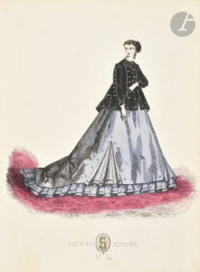 Un tableau de l’élégance à la fin du Second Empire. Dos frotté et craquelé avec petits manques, quelques rousseurs, les serpentes des n° 20, 22, 26, 34, 38 manquent.
