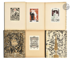En feuilles, sous chemise de papier décoré noir et or, le tout conservé dans une boîte noire moderne de Hugo Guillotin, dos des chemises entoilés.