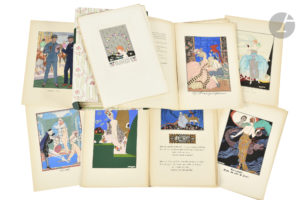- 5e fascicule - 1920 : (24 feuillets) (textes d’Abel Hermant, Henri de Régnier, René Boylesve, Jean Hermanovits, André de Fouquières, Madame de Mirecour, illustrés de compositions en couleurs dans le texte de Brunelleschi, George Barbier, Stab et Bonnotte), 8 hors-textes (La Lettre attendue de Monsieur Zinoview, Flirt de Geischa d’Emmanuel Blanche, Les Colombes familières de George Barbier, Roi Soleil par Blanche, Charmante par Robert Polack, De l’été à l’automne par Bonnotte, Malmaison par Bonnotte et Sirène par Bonnotte) et 6 feuillets de réclames.