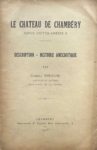 - PEROUSE (Gabriel) : Le château de Chambéry depuis Victor-Amédée II. Description - Histoire anecdotique. Chambéry, Imprimerie P. Gentil, 1918. In-8°, broché. Illustré d'un plan dépliant.