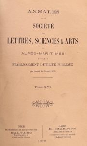 - MORIS (Henri) : Réunion de Nice à la France en 1793, in Annales de la Société des lettres, sciences et arts des Alpes-Maritimes, tome XVI, 1899. In-8°, broché, couverture muette.