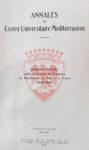- COLLECTIF : Annales du Centre Universitaire Méditerranéen : numéro spécial publié à l'occasion du centenaire du rattachement de Nice à la France. Treizième volume, 1959-1960. In-8°, broché.