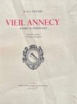 - DUPARC (Pierre et Suzanne) : Vieil Annecy. Scènes & portraits. 1 vol. petit in-4°, broché, couverture rempliée. Annecy, Gardet & Garin, 1945. Première édition, tirée à 500 exemplaires numérotés (N° 474). Illustré de vignettes dans le texte de Philippe Kaeppelin. Chronique du Vieil Annecy, de la Renaissance à la Révolution. Faux plis sur la couverture. Perret, 1451-A