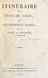 [STRUVE (Henri)] — Itinéraire du pays de Vaud, du gouvernement d'Aigle, et du comté de Neuchatel et Vallengin.