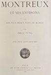 - YUNG (Émile) : Montreux et ses environs. L'un des plus beaux pays du monde. Zurich, J. A. Preuss, 1898. In-4°, broché, couverture illustrée de l'éditeur. Première édition. Illustré de 200 photogravures dans le texte, certaines à pleine page. Un bel album sur Montreux et la région (Vevey, Chillon, Dent de Jaman). Couverture un peu fanée.