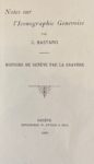 - [BASTARD (Charles)] : Notes sur l'iconographie genevoise. Histoire de Genève par la gravure. Genève, Imprimerie W. Kündig & Fils, 1899. 1ère édition, tirée à part de La Suisse à 75 exemplaires seulement. Bon exemplaire.