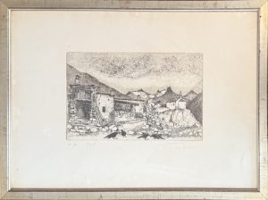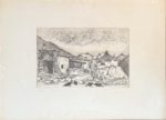 Vers 1980. Lithographie, 38,5 x 24,5 cm, encadrée. Lithographie tirée à 12 exemplaires numérotés (n° VII). Cachet à sec de l'atelier de l'artiste. Vue du hameau de l'Écot, à Bonneval-sur-Arc, en Haute Maurienne.