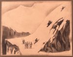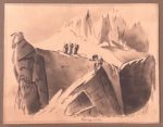 AULDJO (John) (attribué à) — Six dessins relatant l'ascension du Mont-Blanc : Scaling a wall of ice, Passage of a block of ice in a crevice, A dangerous part of the glacier, Bridge of snow where the party Breakfasted, Passing a cliff, Sliding down a snow hill.
