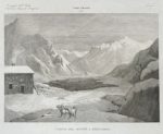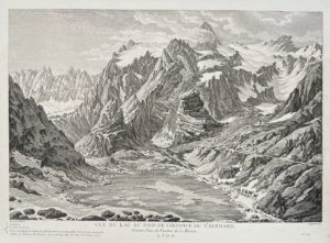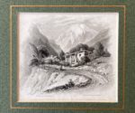 - Wiliam Brockedon : vignette représentant le Mont-Blanc vu de la vallée d'Aoste, gravure sur acier de 8 x 7 cm à vue sous passe-partout.