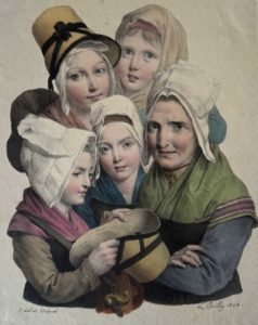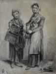 - Savoyardes, dessin original au fusain, 17 x 22 cm, XIXe siècle. En feuille sous passe-partout.
