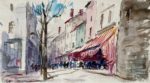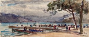 1932 - 1938. Trois aquarelles, 12,5 x 28,5 cm, 111 x 19,5 cm et 13 x 24 cm, en feuilles. La vue animée du grand port d'Aix-les-Bains est signée et désignée en bas à droite, et datée en bas à gauche (16 juillet 1938). Celle du port de pêche (Camaret ?) est signée en bas à gauche. Celle d'Aix-en-Provence est située en bas à gauche et signée et datée en bas à droite (1932).