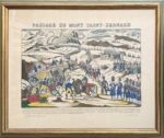 - GEORGIN (François) : Passage du Mont Saint-Bernard. Reproduction en couleurs vers 1960, imprimée sur papier d'Arches, d'une image d'Épinal publiée par Jean-Charles Pellerin vers 1830. 48 x 64 cm (à vue). Encadrée.