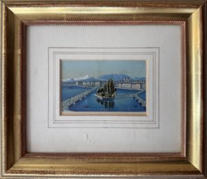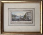 Gouache originale, 9,5 x 6 cm, encadrée. Belle vue, à la manière de Dikenmann, vers 1860.