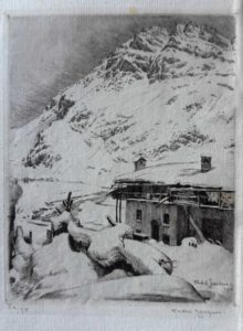 1926. Eau-forte, 13è,7 x 17,4 cm, en feuille. Superbe paysage hivernal à Bessans, en Haute-Maurienne. Tirage limité à 75 épreuves (celle-ci N° 54).