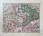 Amsterdam, première moitié du XVIIe siècle. Carte gravée sur cuivre et aquarellée, 49 x 37 cm, encadrée. Carte de la Suisse Occidentale, depuis le lac Léman au Sud, le lac de Neuchâtel et le Jura à l'Ouest, et le lac de Thun et l'Oberland à l'Est. Bel exemplaire, mis en couleurs à l'époque.