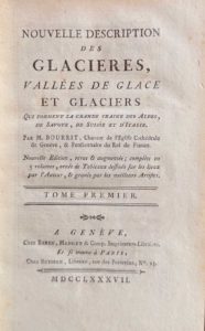 Bourrit (Genève 1739 – Lancy 1819), d'origine modeste, fut le chantre de la cathédrale de Genève. Il a consacré une part importante de sa vie à parcourir les Alpes et particulièrement la vallée de Chamonix. Il a publié de nombreux volumes sur les Alpes, qu'il a illustrés lui-même et qui ont beaucoup contribué à les faire connaître des personnalités de l'époque. Contrairement à Saussure, il ne parviendra jamais à la cime du Mont-Blanc, malgré de nombreuses tentatives, et il en conservera toujours un sentiment de frustration.